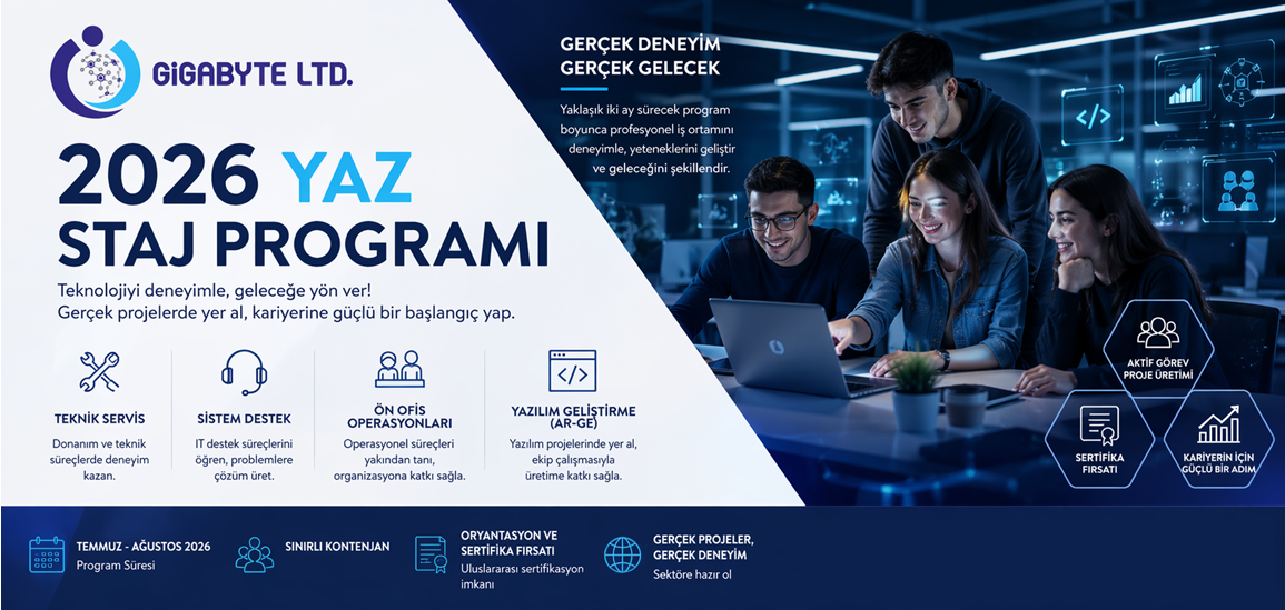 As Gigabyte Ltd, within the scope of our Summer Internship Program to be held between July 2026 – August 2026, a limited number of positions have been opened for students who are interested in technology and eager to improve themselves.